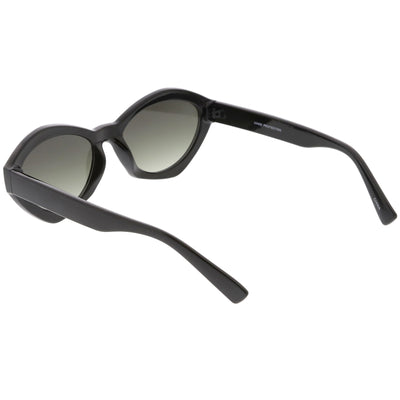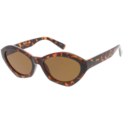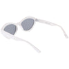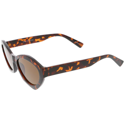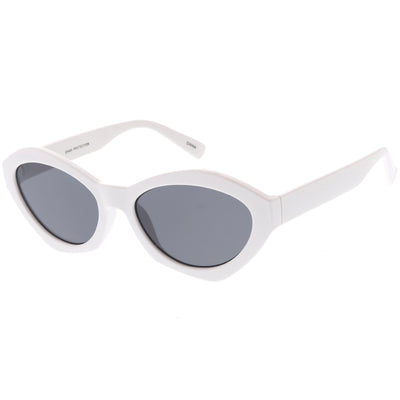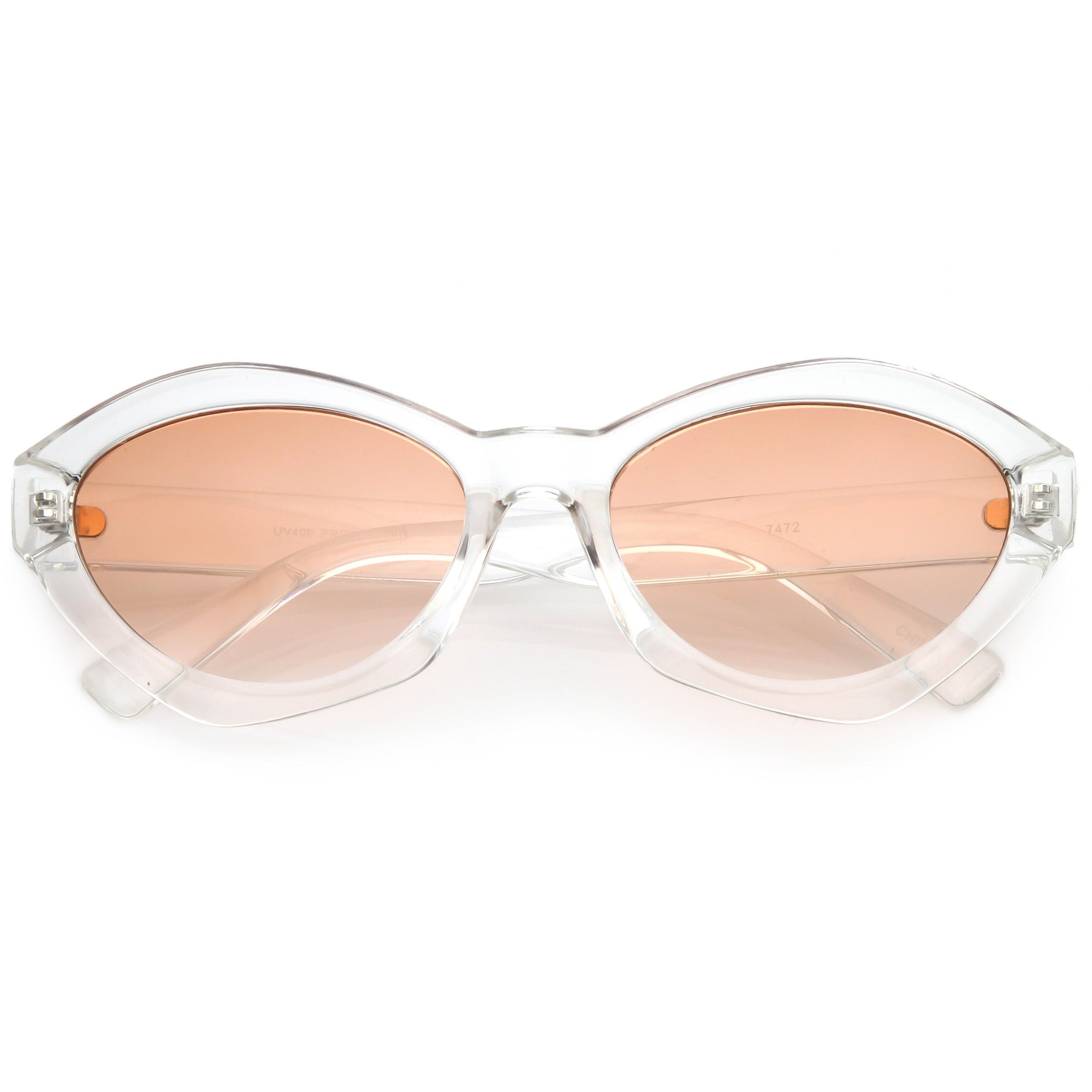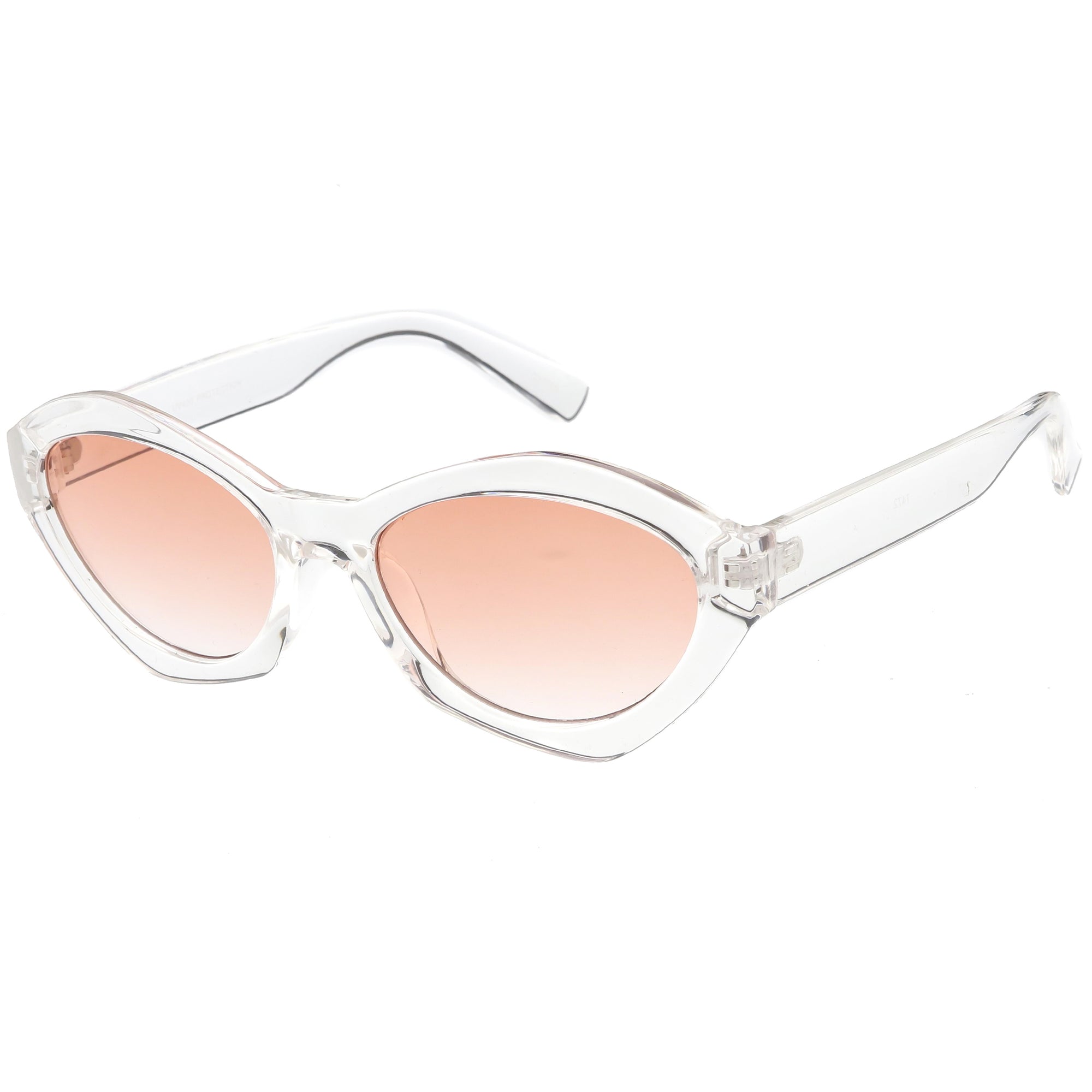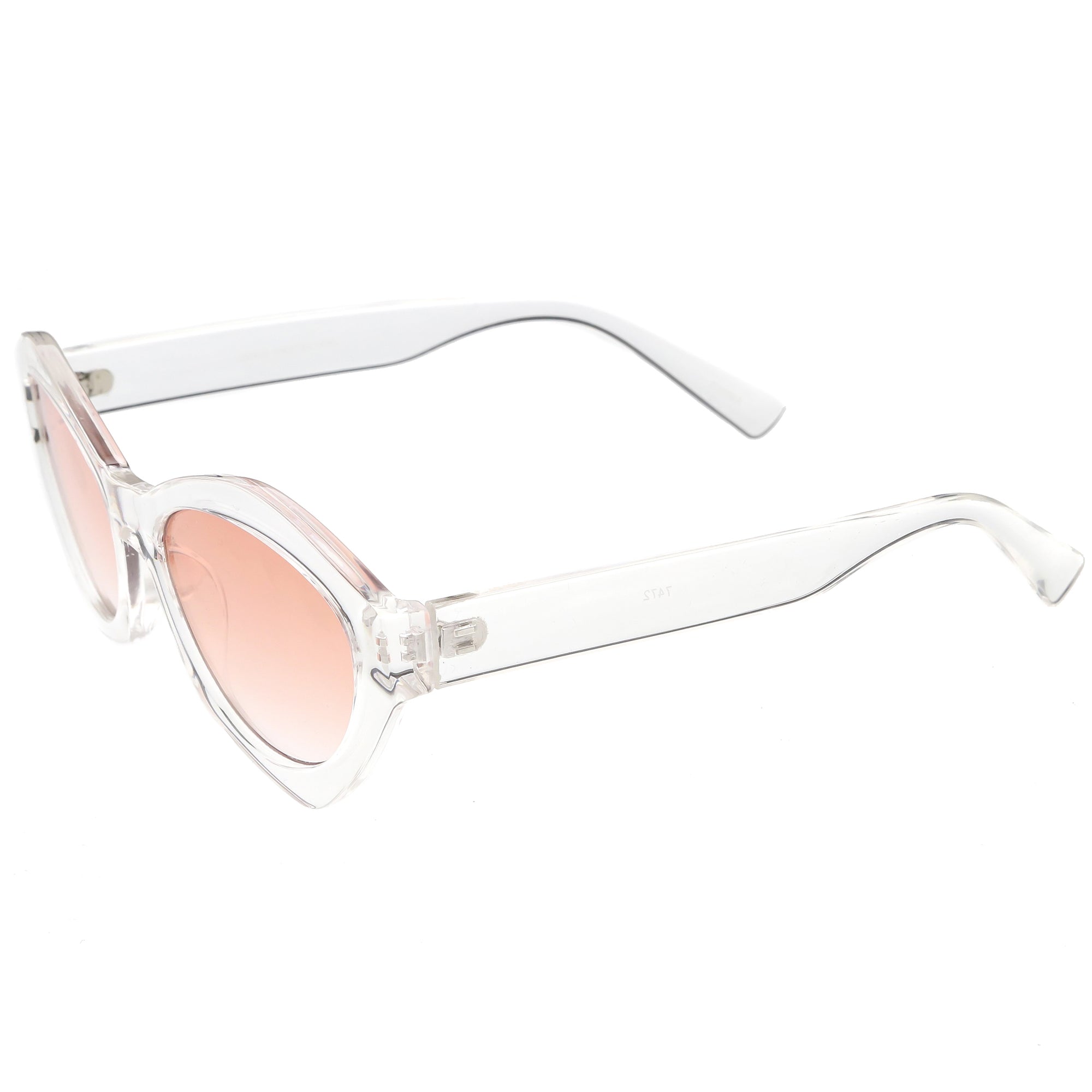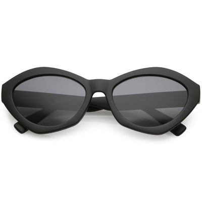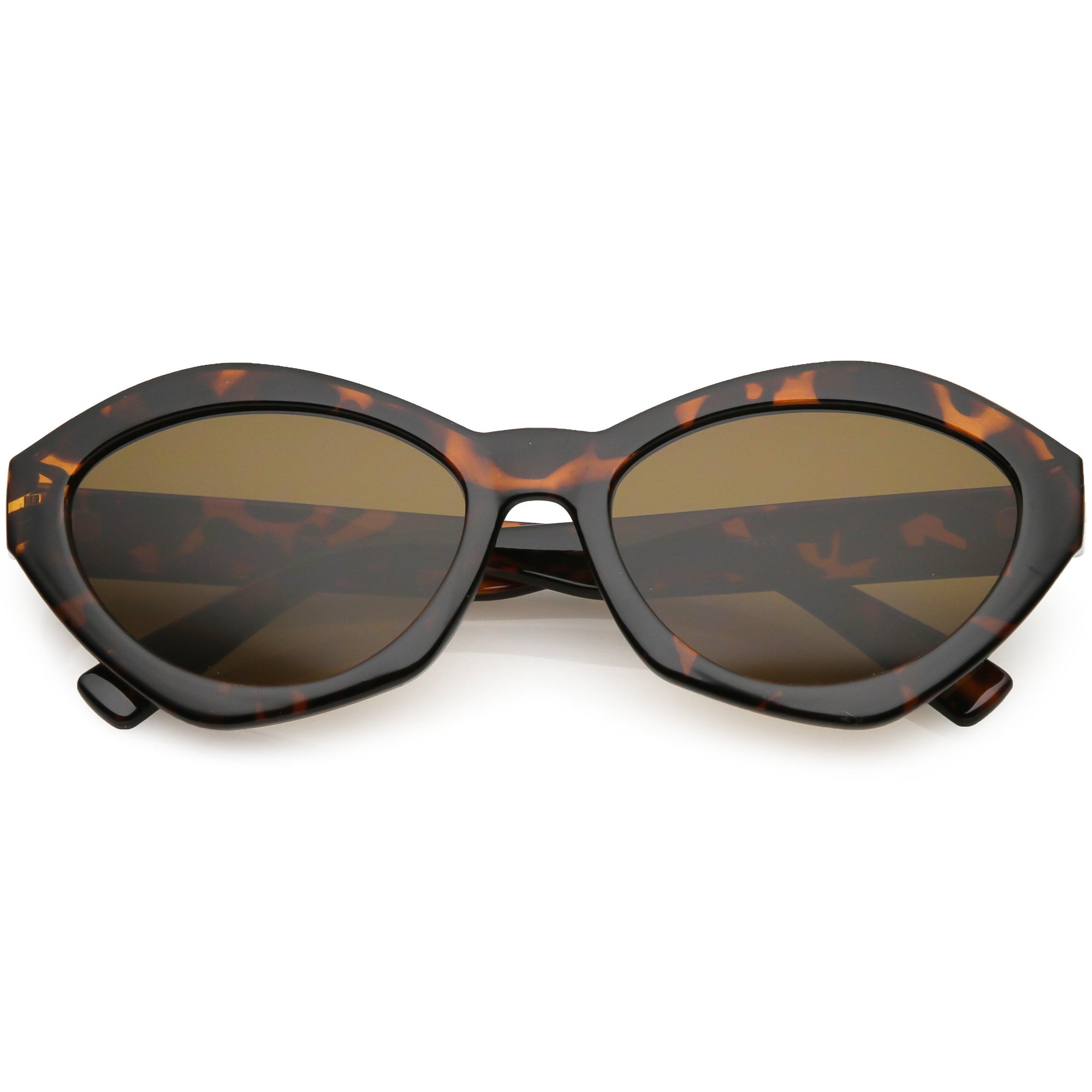 These bold cat eye sunglasses feature a chunky frame and oval flat lenses in neutral colored hues. Accented with high sitting arms for a unique accessory. The edgy frame design provides the perfect mix of modern and retro for a must-have style of this season. Finished with a plastic based frame, reinforced metal hinges, and 100% UV protected lenses.