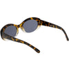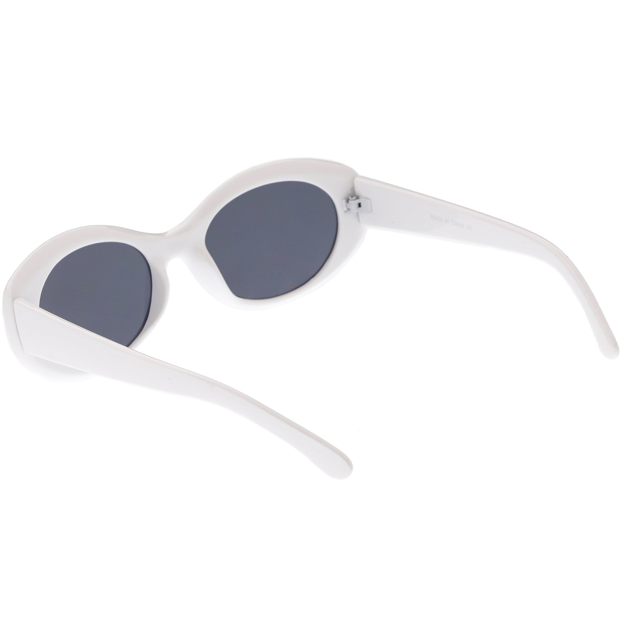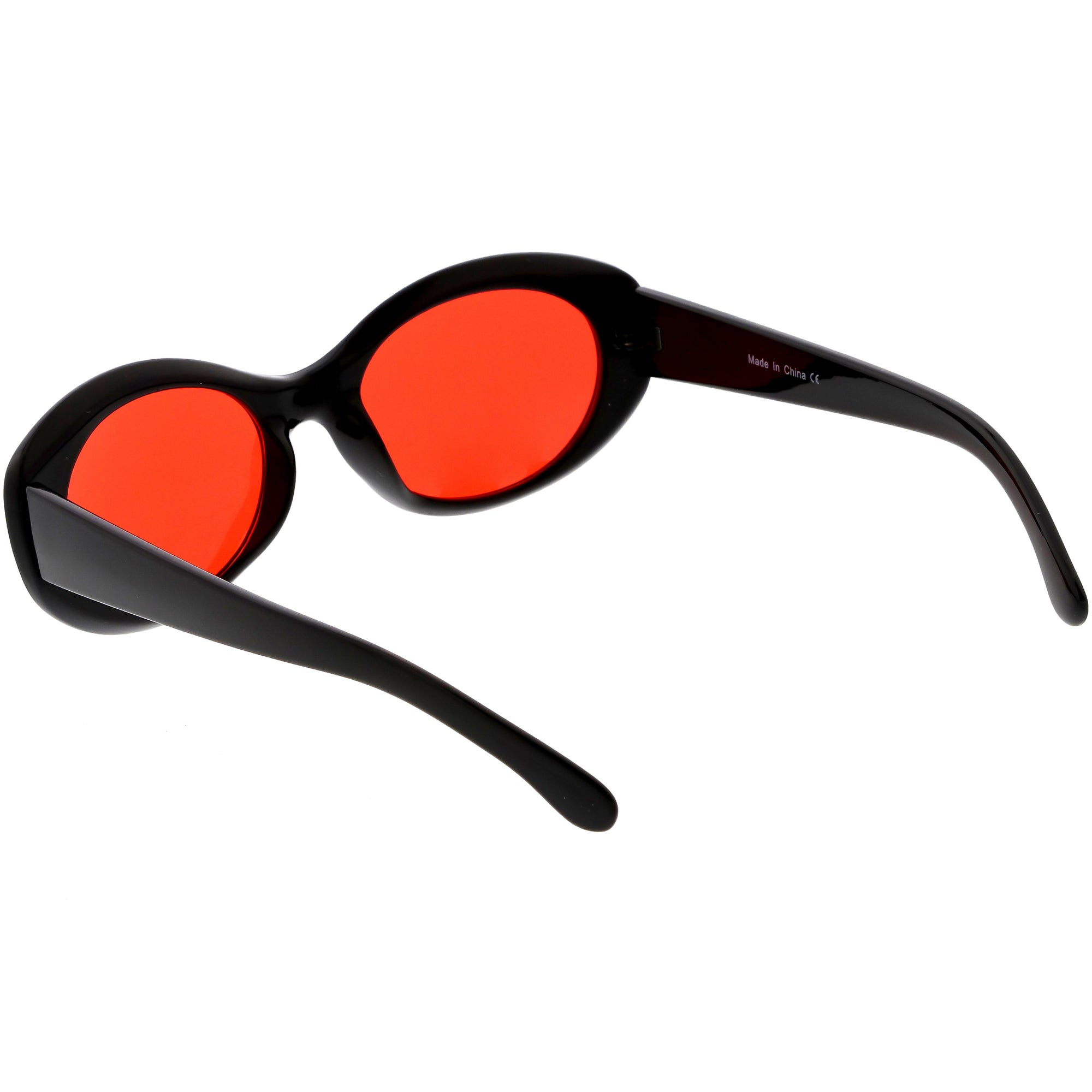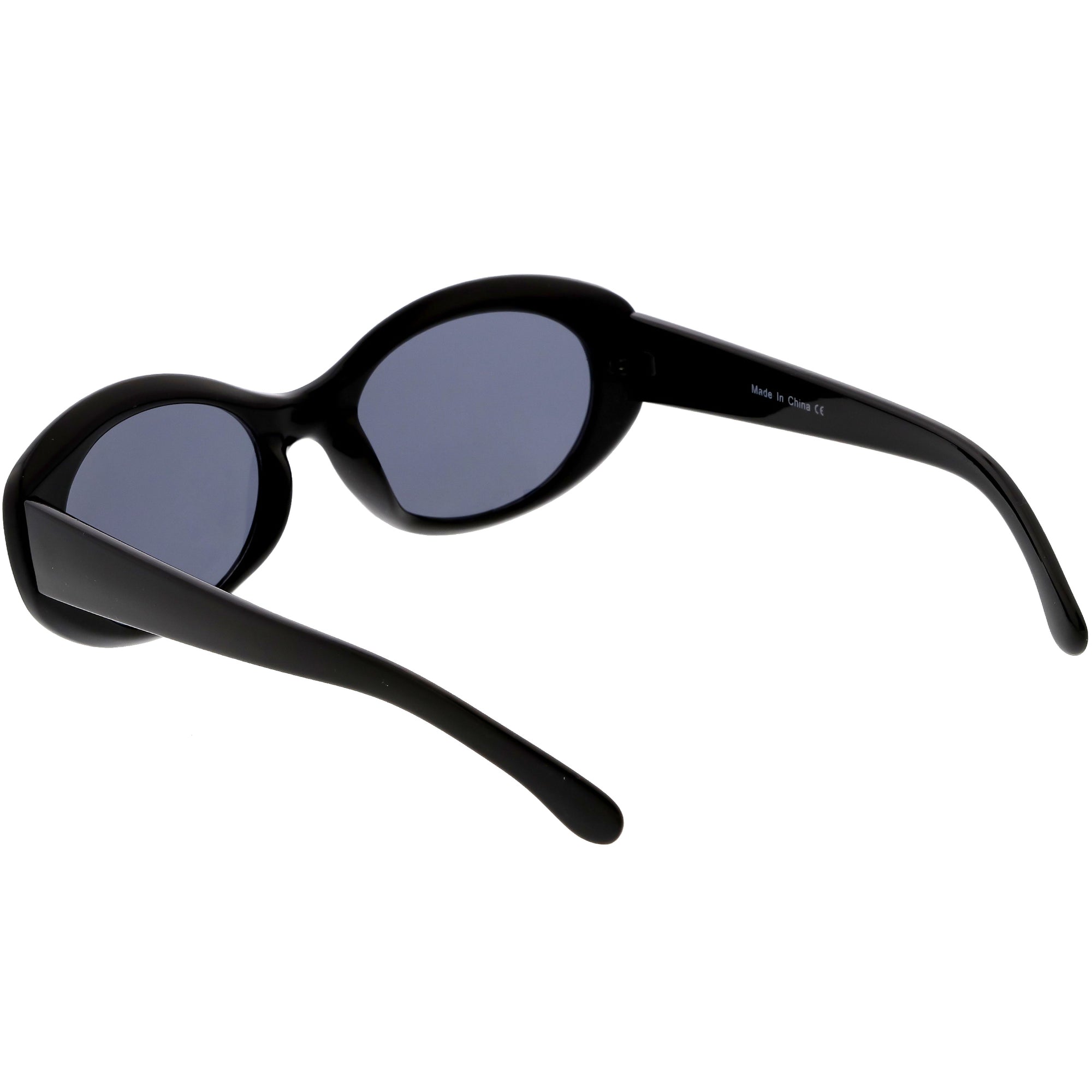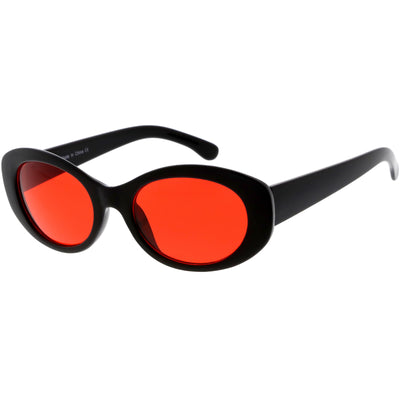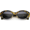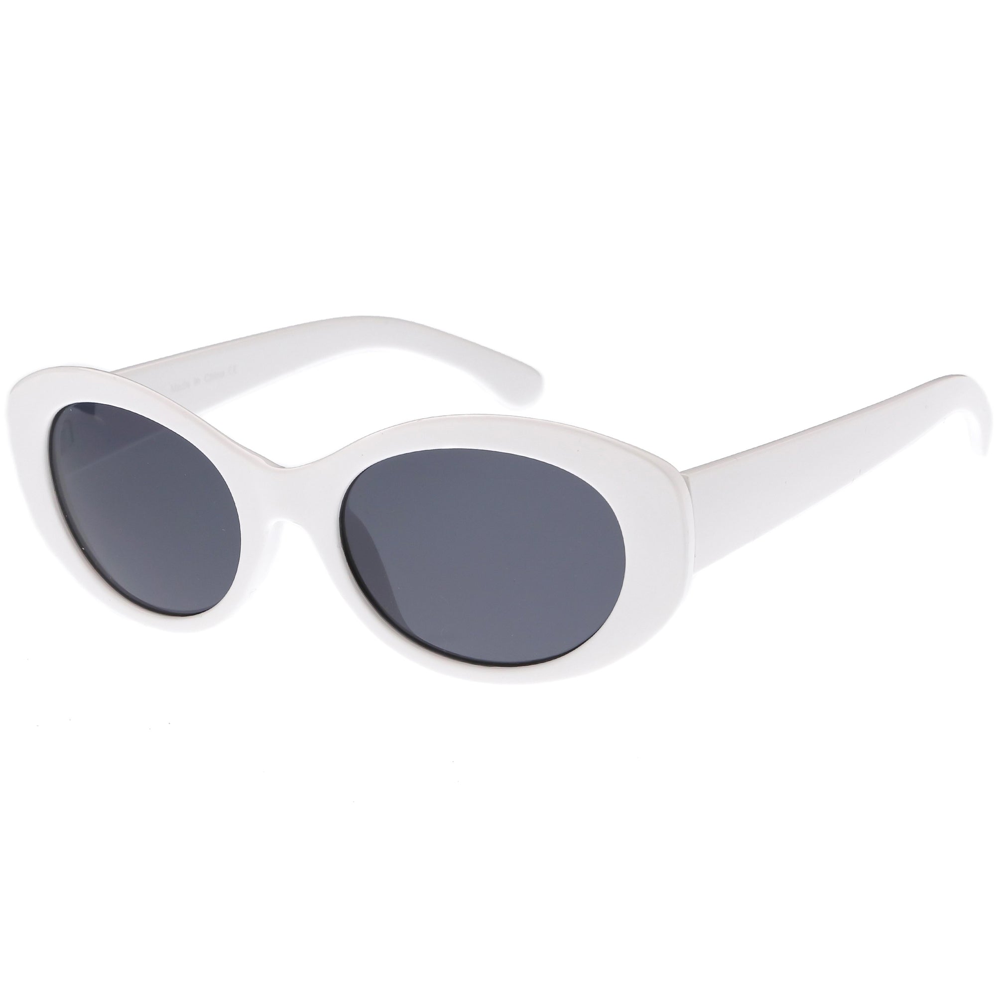 Look retro chic in these oval sunglasses designed with round lenses in neutral colored and color tinted hues. Stylishly wide arms complete this vintage inspired oval sunglasses, making them great for a weekend out with friends. Made with a plastic based frame, reinforced metal hinges, and 100% UV protected lenses.