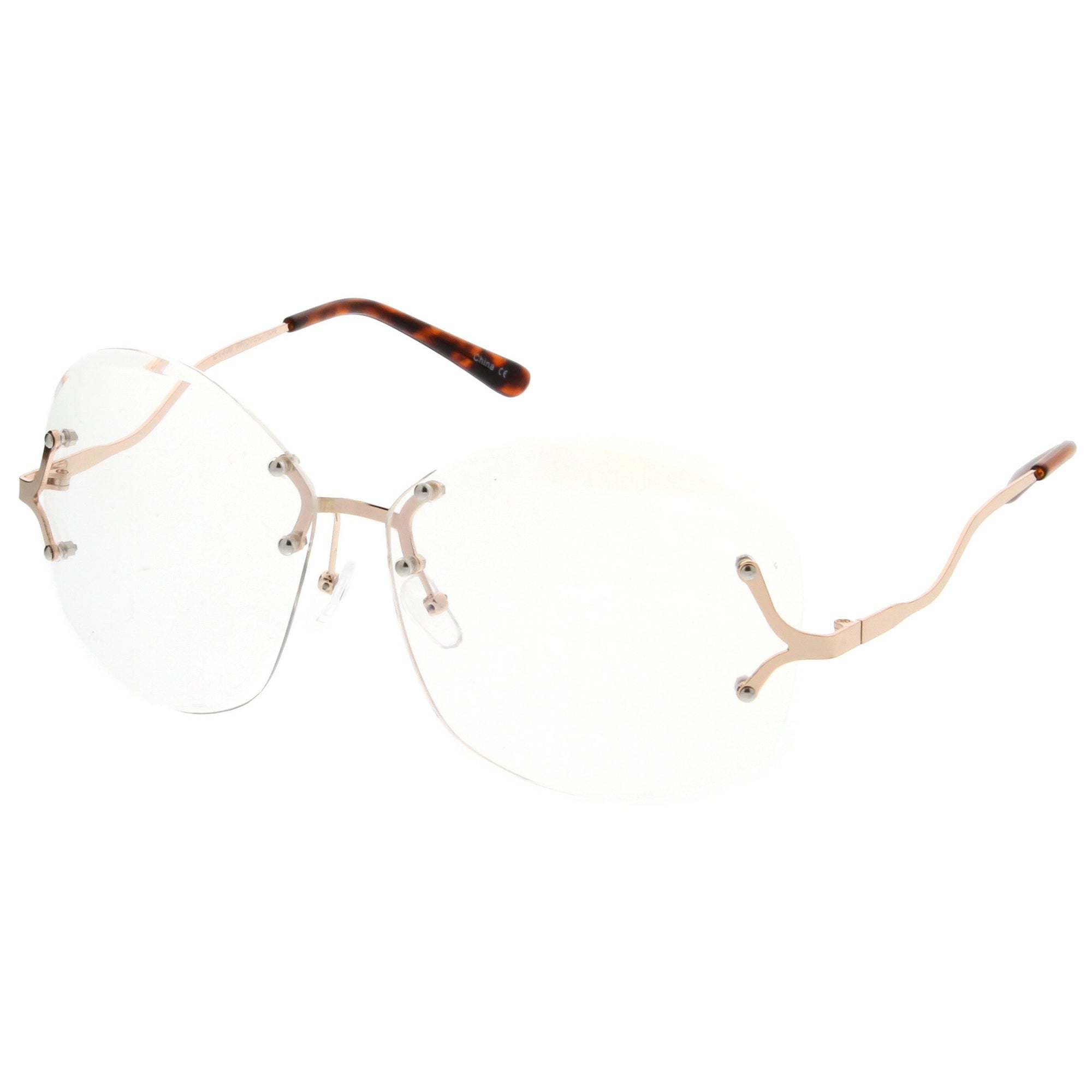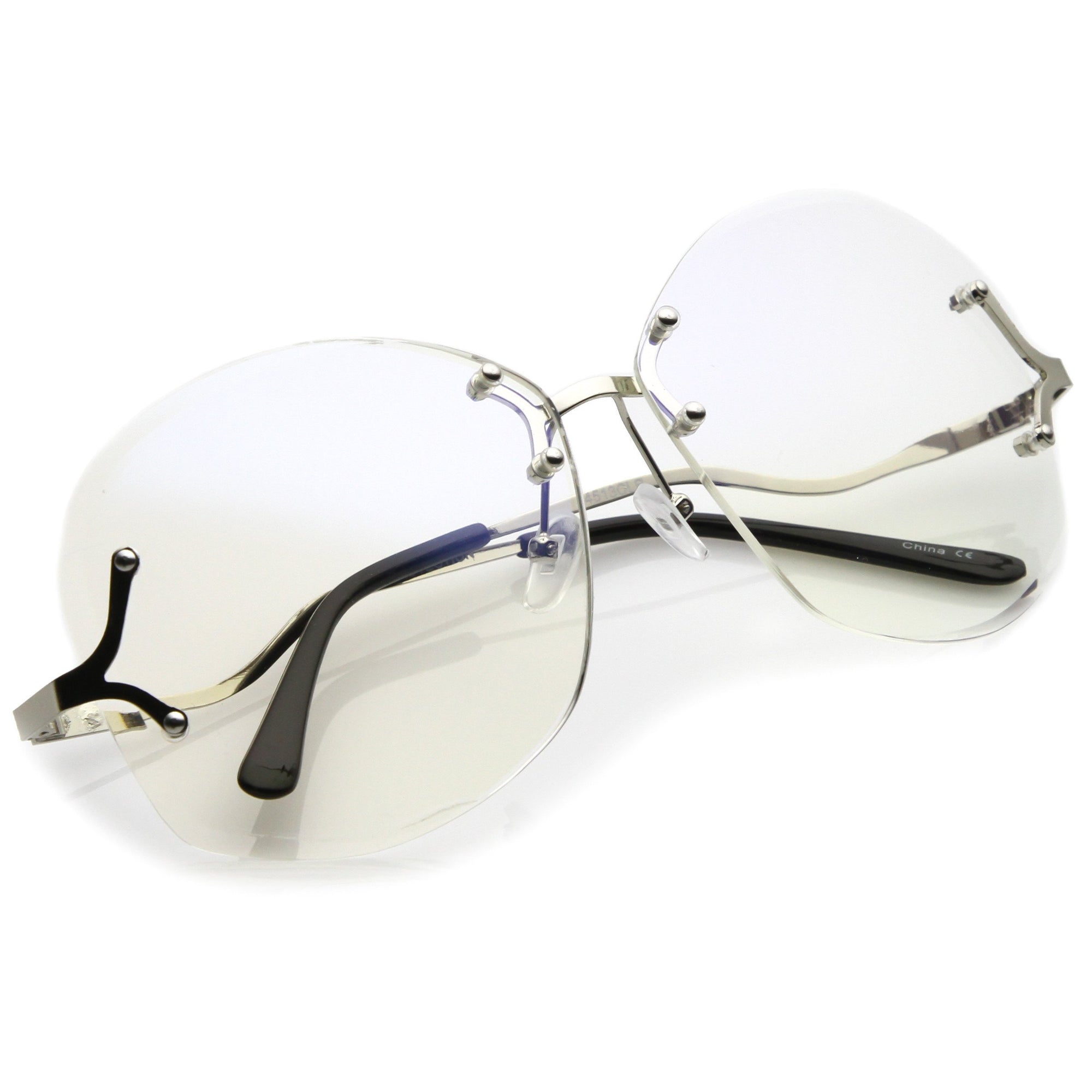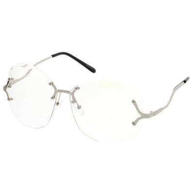 Women's Rimless Oversize Retro Disco Clear Lens Glasses C219