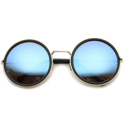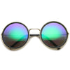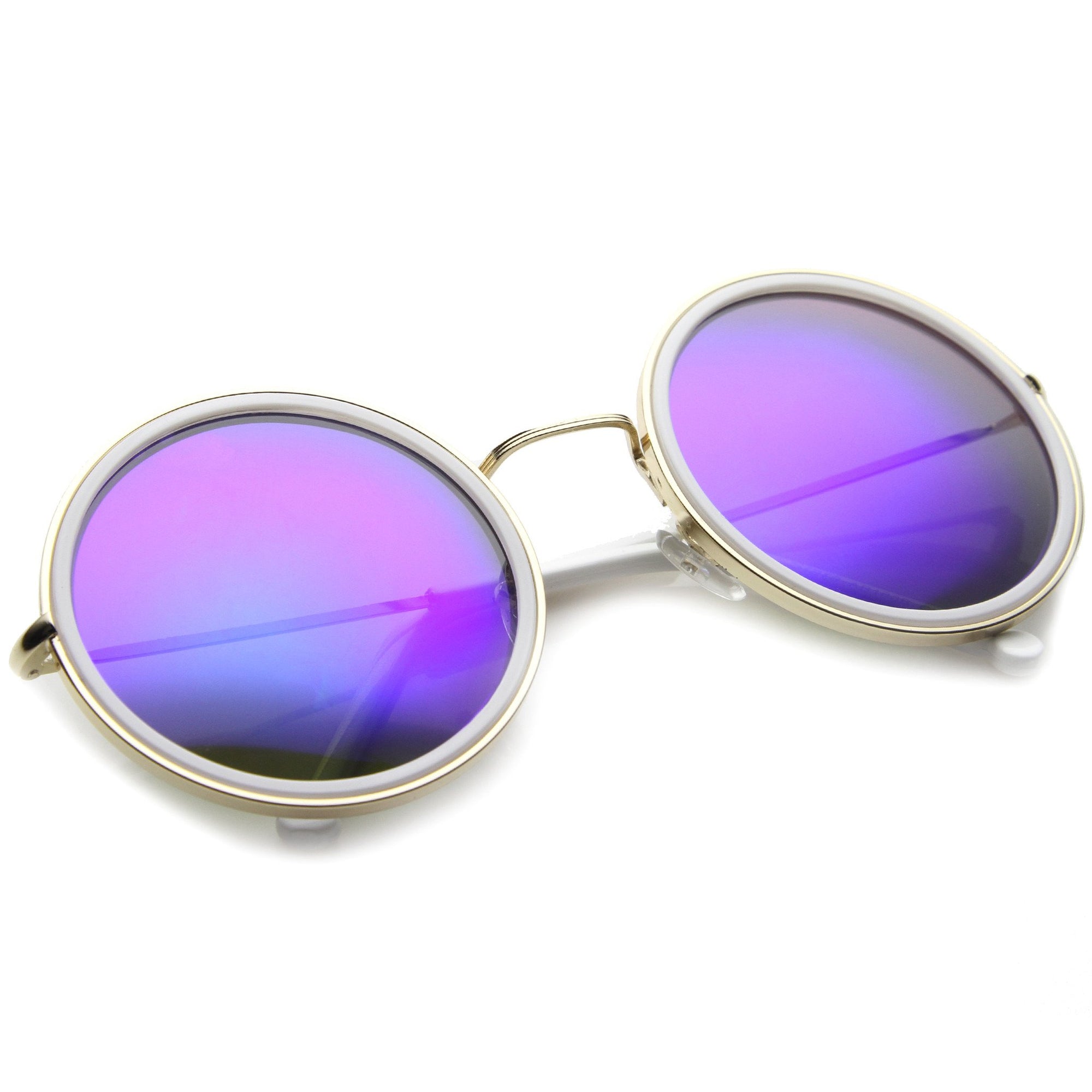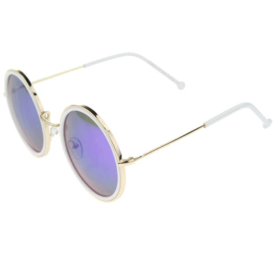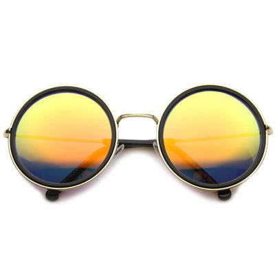 Stand out from the crowd in these retro-inspired round sunglasses. Exquisitely crafted with a full metal frame and stunning color mirror lenses, these retro sunglasses are finished with stylishly thin metal temples. Perfect for a day hanging out with friends or exploring the city, these bold sunglasses are a total must-have accessory. Made with a metal based frame, English style nose pieces, metal hinges, and reflective UV400 polycarbonate lenses.