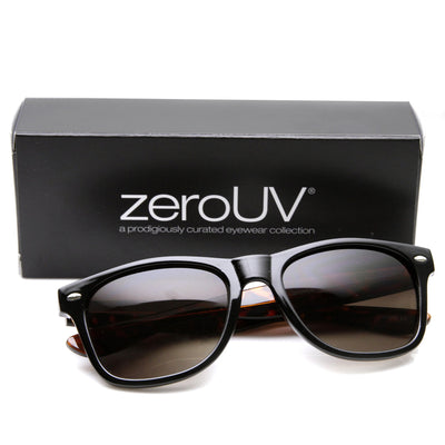 • Introducing a subtle dual tone "Brigitte" horned rim frame. With the subtle combinations of contemporary interpretations of timeless designs, ZeroUV eyewear offers accessible luxury with eyewear that is distinctive yet elegant. Emphasis is placed on quality materials that consist of temples made from cellulose propionate, a nylon-based plastic that is hypoallergenic, lightweight and has more transparency and gloss than other plastics. A metal reinforcement bar is encased within each temple which attaches to a dual-barrel reinforced metal hinge. Lenses are made from thick impact resistant polycarbonate that offer 100% UVA and UVB protection. A mix of rich colors and textures complete the collection for an essential sun wear wardrobe.
